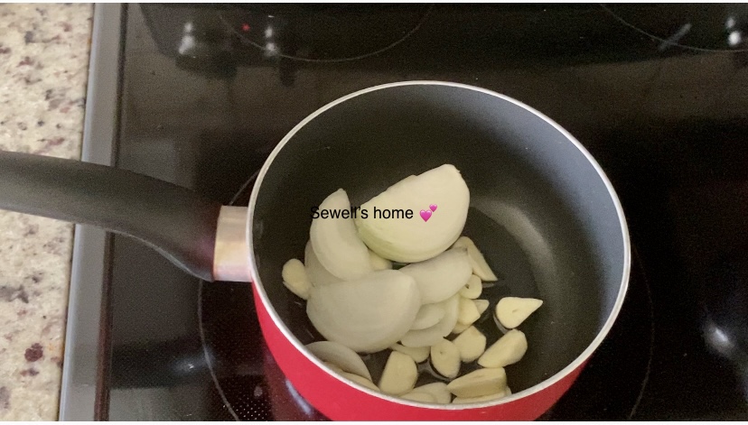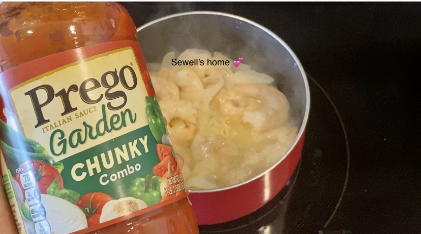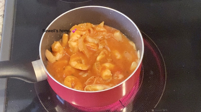 마늘도 노릇해지고 양파가 투명해지면 새우를 넣어요