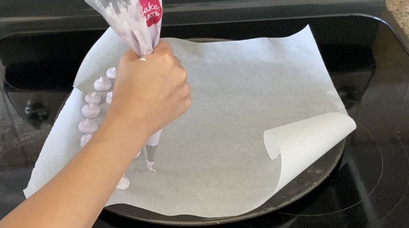 오븐팬에 머랭을 짜주기