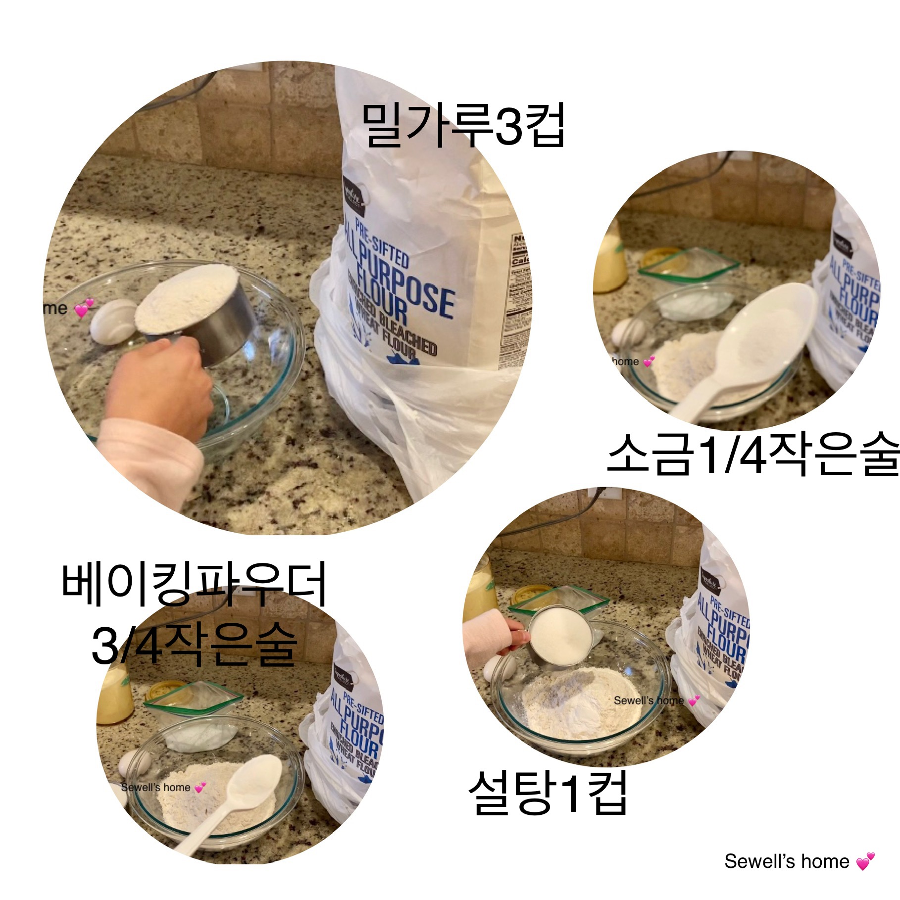 밀가루3컵 , 설탕 1컵