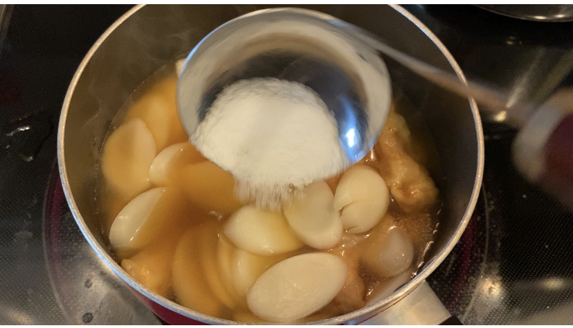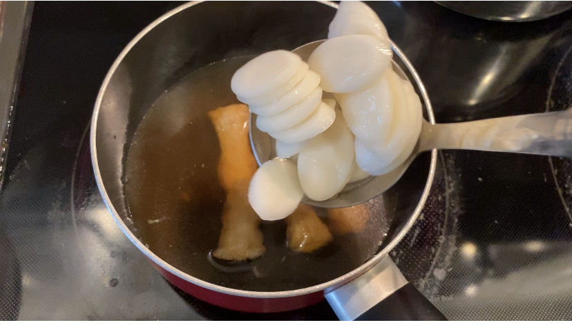 이 육수를 가지고 간장떡볶이 만들었어요 .
